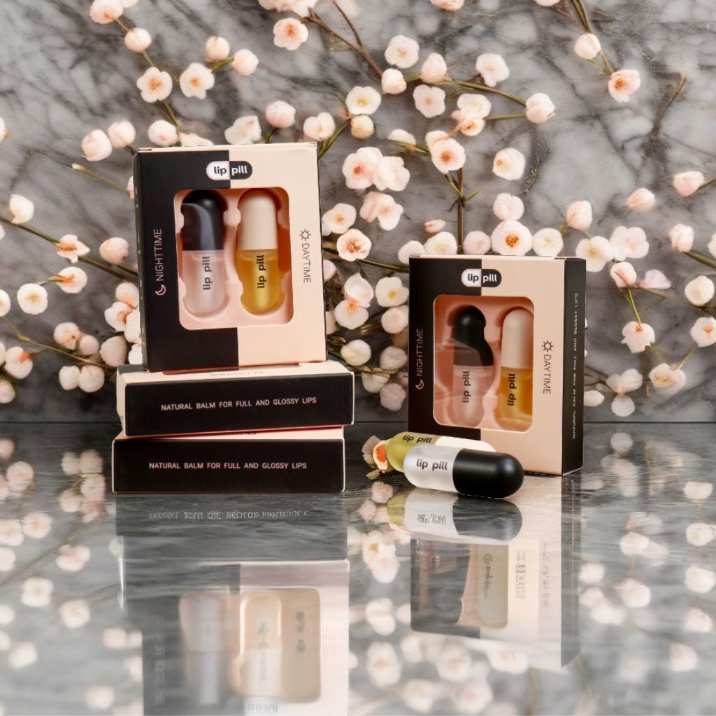 Sastoji se od atraktivnog pakovanja i 2 sjaja za usne: dnevnog koji povećava usne i noćnog koji hidrira i neguje.